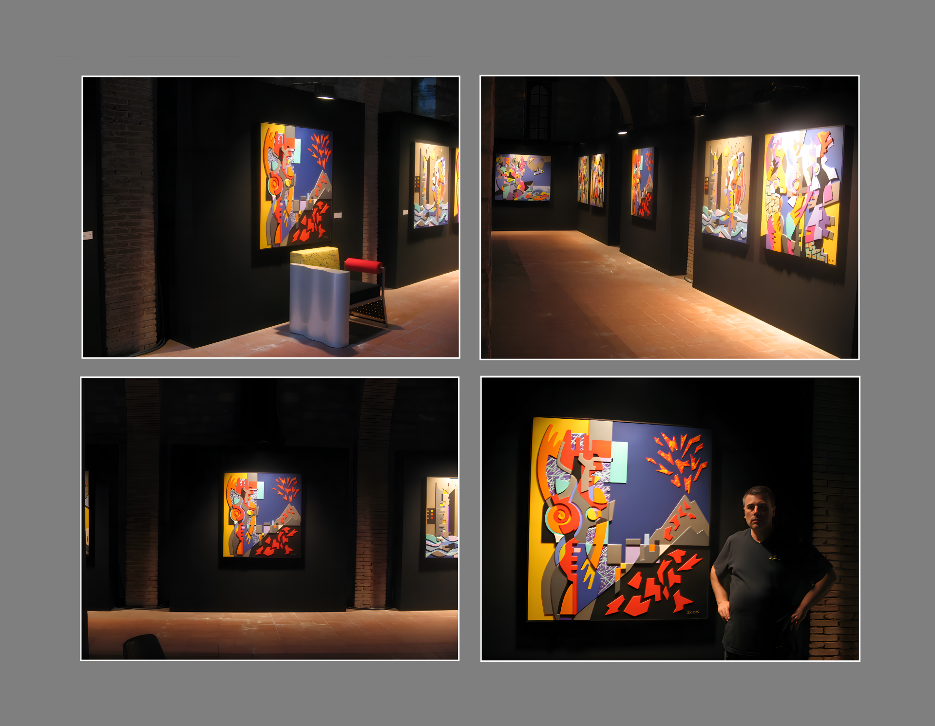 In questa mostra, avrete l'opportunità di ammirare opere d'arte uniche, tutte costruite con una tecnica distintiva: il legno intarsiato a rilievo. Ogni pezzo è meticolosamente lavorato per creare profondità e texture, e successivamente colorato con vivaci vernici acriliche. Questa combinazione di materiali e tecniche conferisce alle opere un carattere tridimensionale e una luminosità inconfondibile, rendendo ogni dettaglio un punto di interesse.